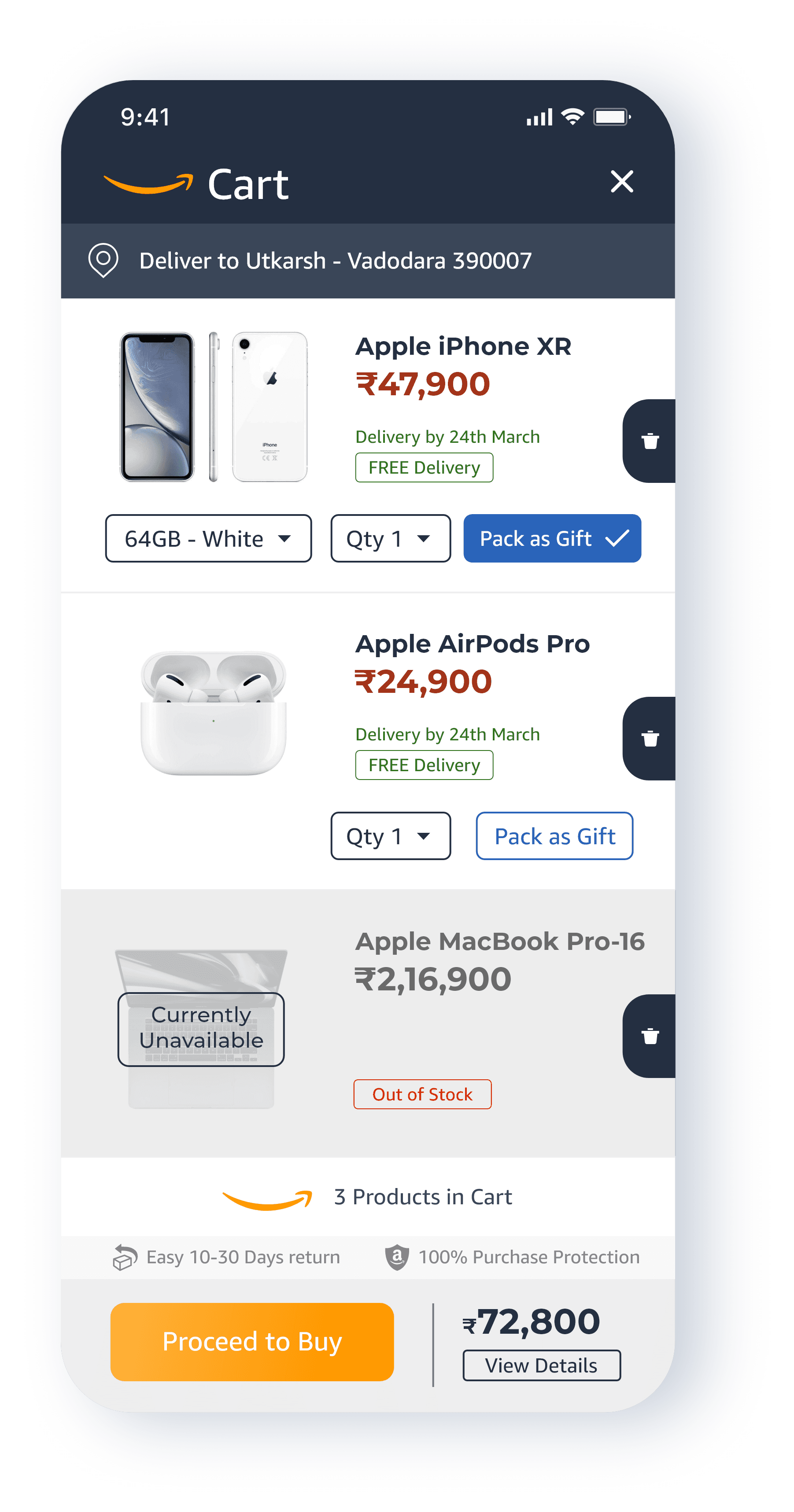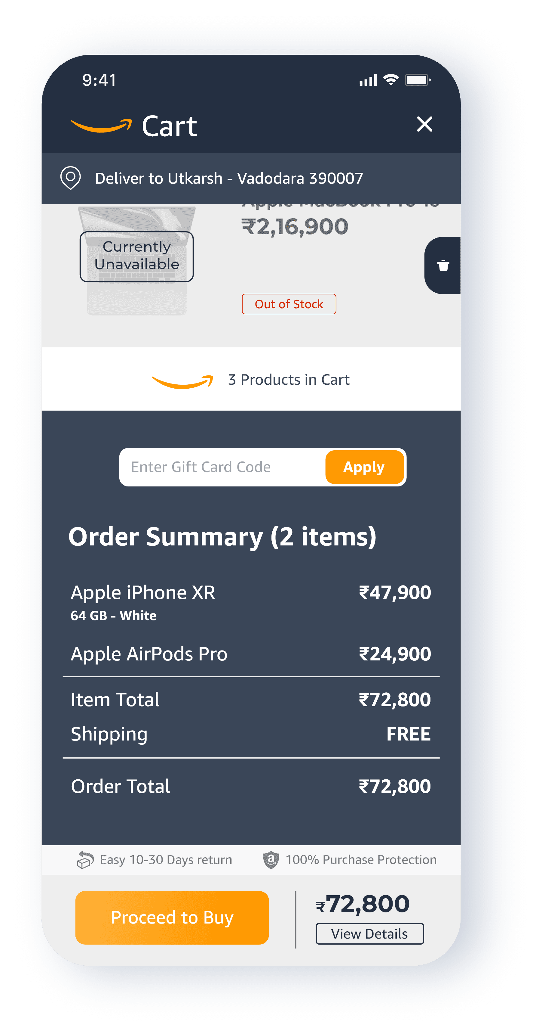 Many users also lost interest in buying as they lose the feel while they are in the cart screen because the product is not well-visible to them. Animations or video might be helpful to keep the user looped in on what they are planning to buy.