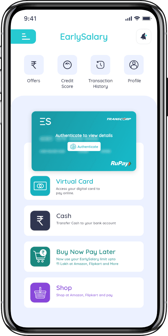 The Home view consists of a Card with authentication, while the shop is more visible and linked with the buy now pay later option.