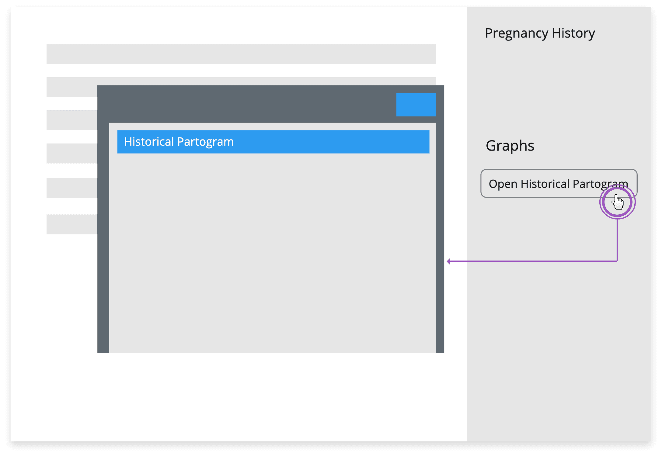Historical Partogram is accessed from a side panel in Pregnancy History component.