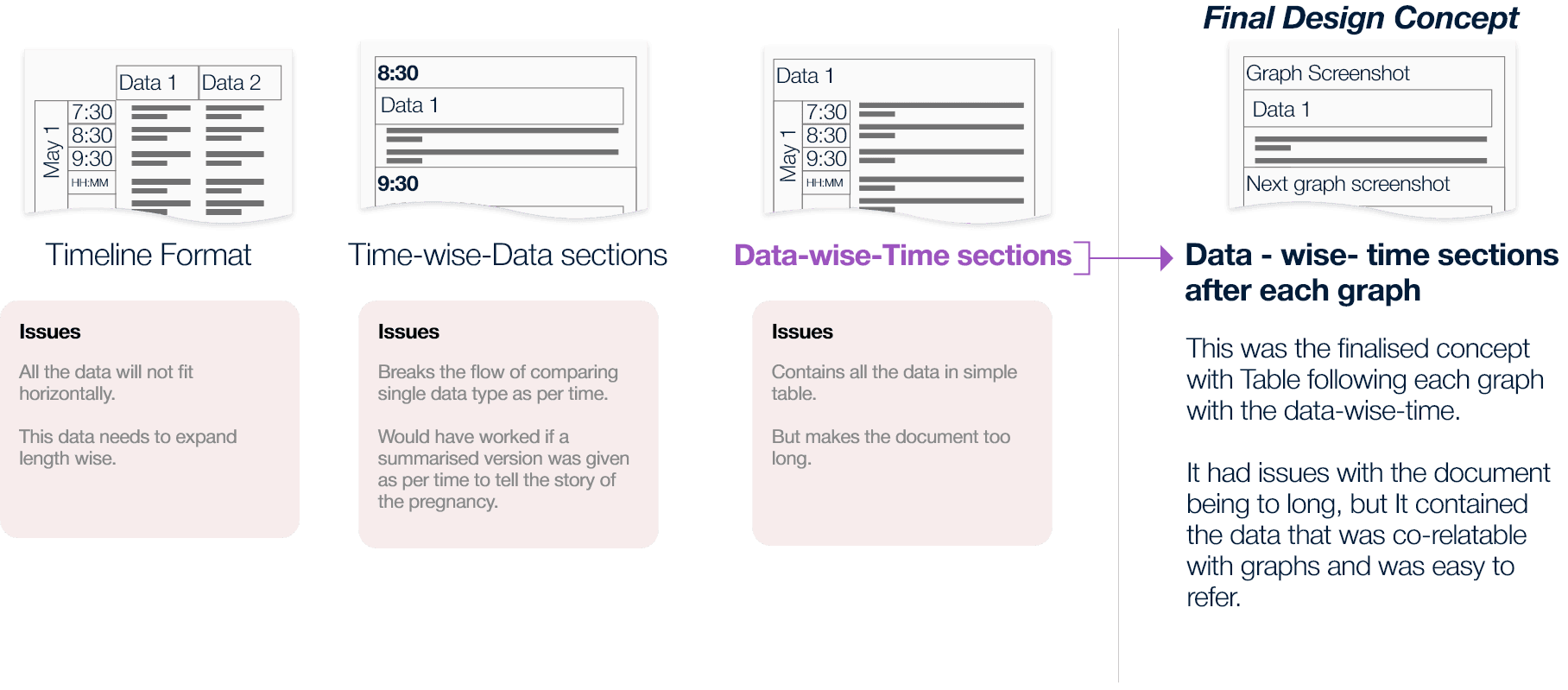 After discussion with the team, I had created three concepts on how the data could be displayed.