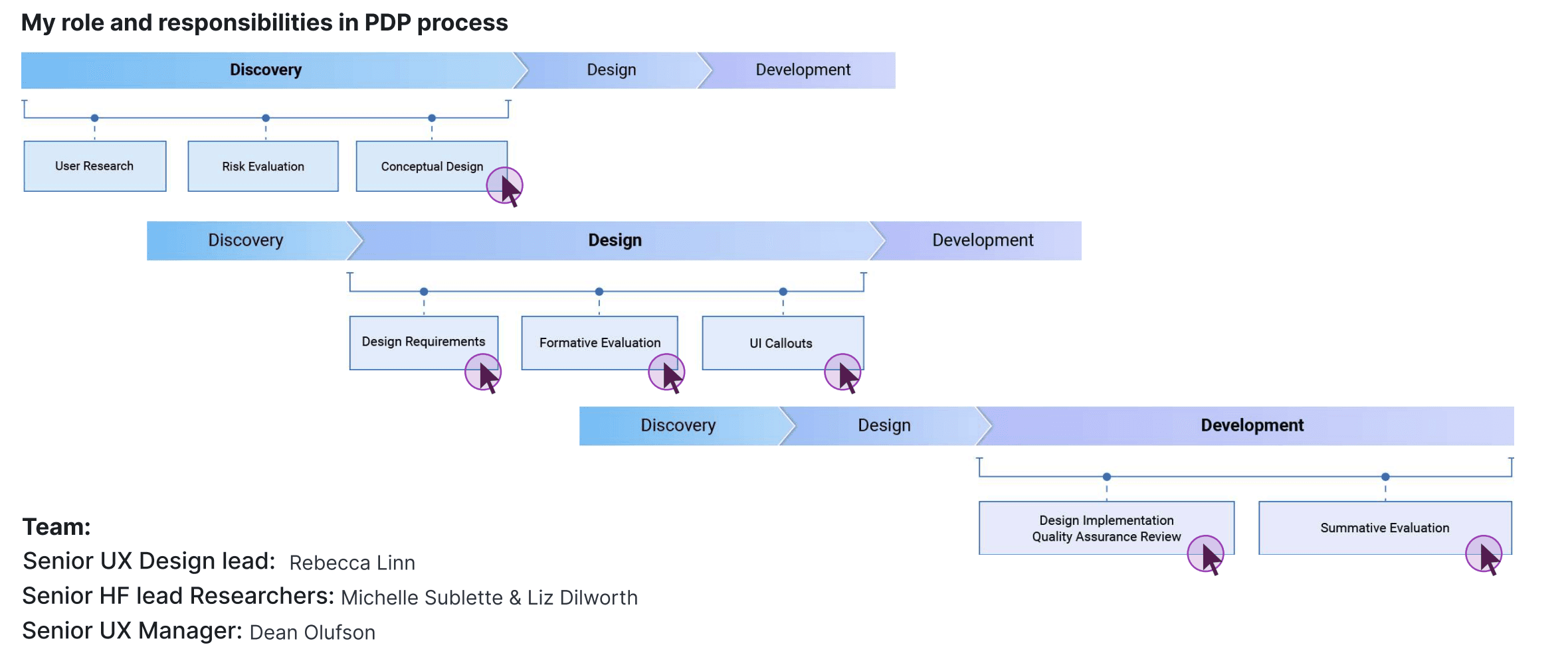I have served as a User Experience Designer at Oracle Cerner. My design philosophy has consistently centered on crafting innovations that can revolutionize our perspective on technology and the future. At Oracle Cerner, I engaged with the PDP process, assuming these roles and responsibilities: