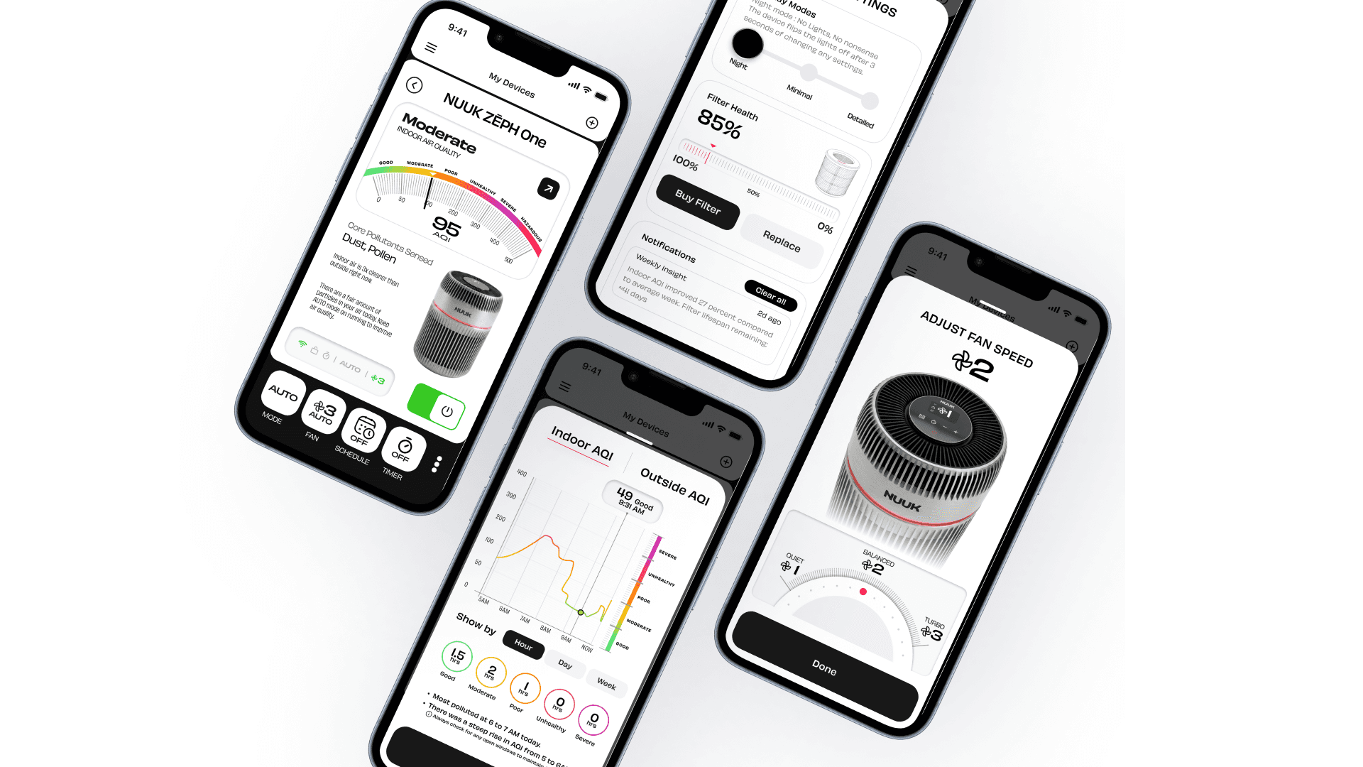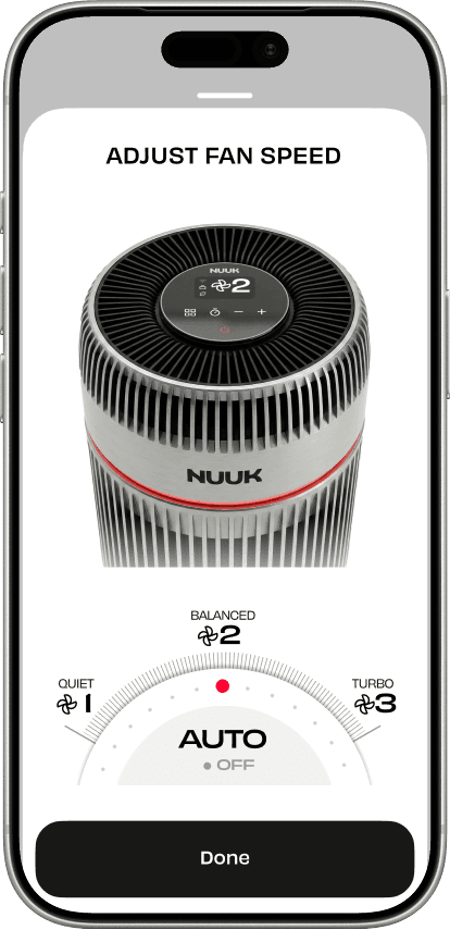 NUUK currently has one smart product — an oil heater — connected to their existing app. The air purifier was a hypothetical device with no existing UI, interaction patterns, or product identity to reference